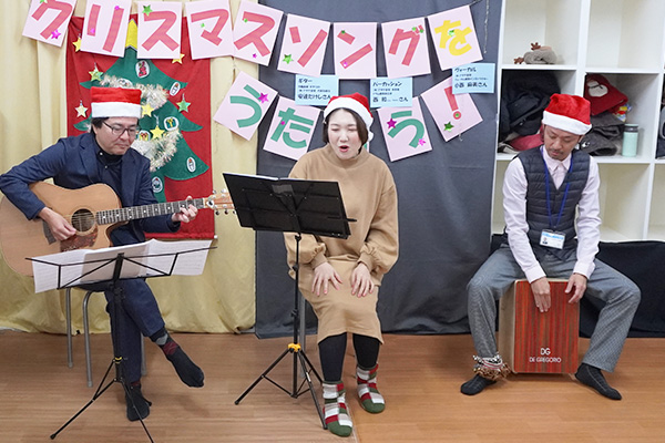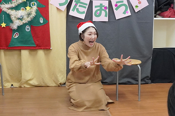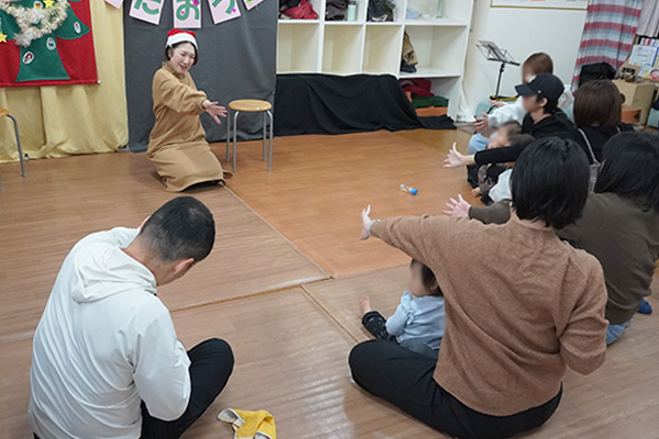 後半は、歌う準備が整った身体でクリスマスソングや童謡を親子で歌って楽しみました。サンタやトナカイの衣装で参加してくれたお子さまもいて、クリスマスムード満点の暖かい会となりました。