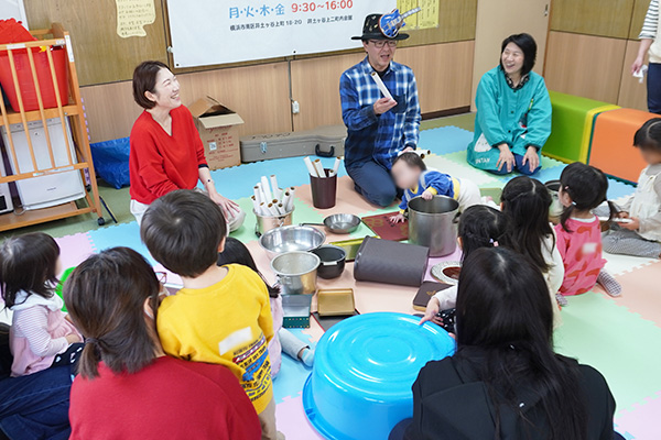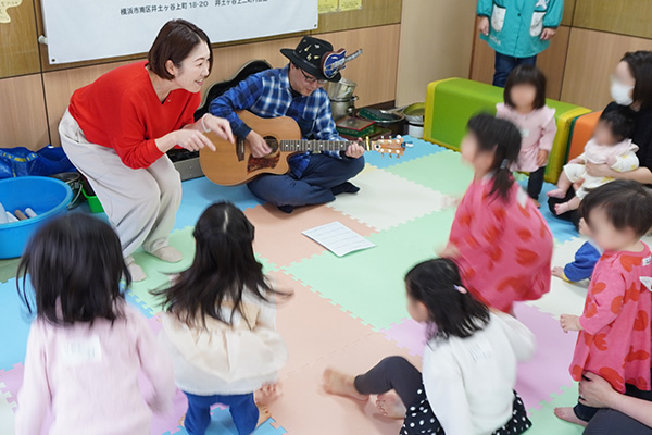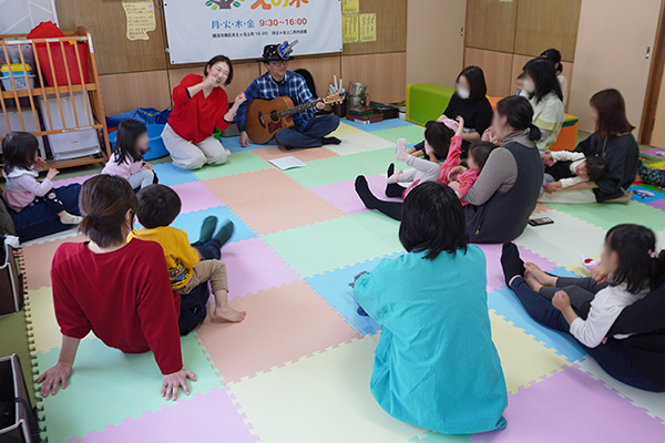 横浜市南区にある「つどいの広場 えの木」にて、「何でも太鼓でリズム遊び & ギターに合わせて一緒に歌おう」と題して、お子さまと保護者様に向けたイベントを開催しました。